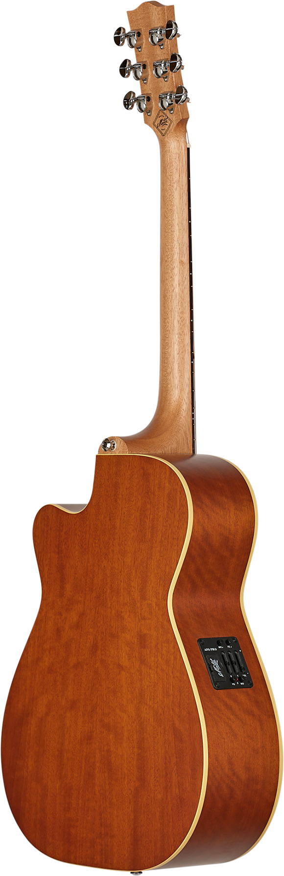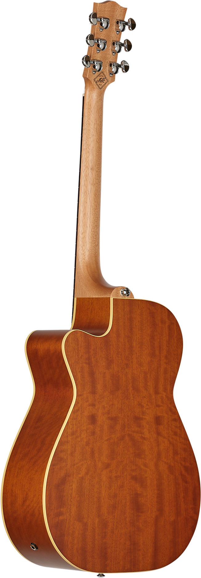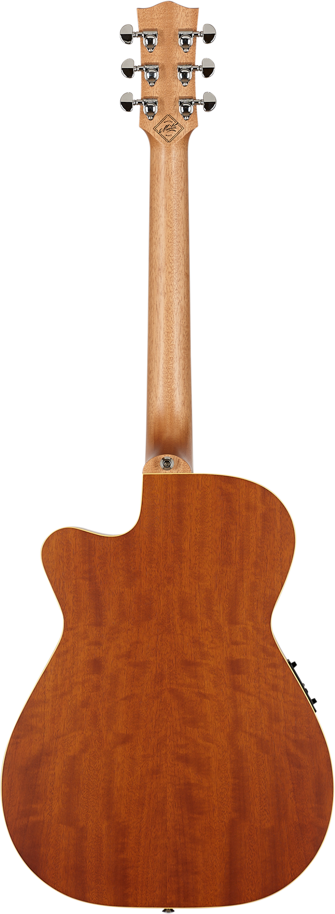 The Walnut headstock veneer is inlaid with a mother-of-pearl Maton logo and the famous kangaroo at the top of the headstock.