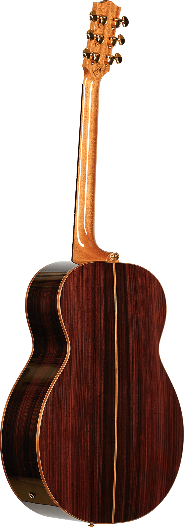All the volume and resonance you would expect from a jumbo, but with a shallower body depth and reduced silhouette making it much easier to handle on stage or in the studio.